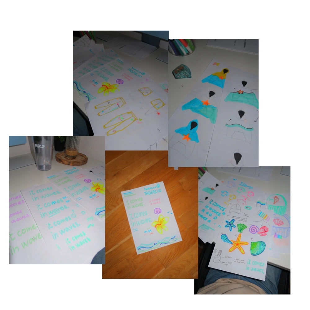 Mezitím jsem začal vymýšlet další produkty celkově vibe kolekce. Napadlo mě napsat "It Comes In Waves" ručně.