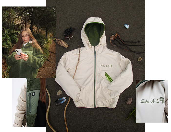Grounded kolekce pro mě znamená propojení s přírodou a lesem, které je v každém z nás. Obsahuje mikiny, tepláky, trička a kšiltovky na každodenní nošení v tlumených barvách. Novinkou je luxusní umělý kožich, který spojuje pohodlnost mikiny s lookem kožichu a oboustranná bunda do každého počasí – z jedné strany fleecová, z druhé větrová.