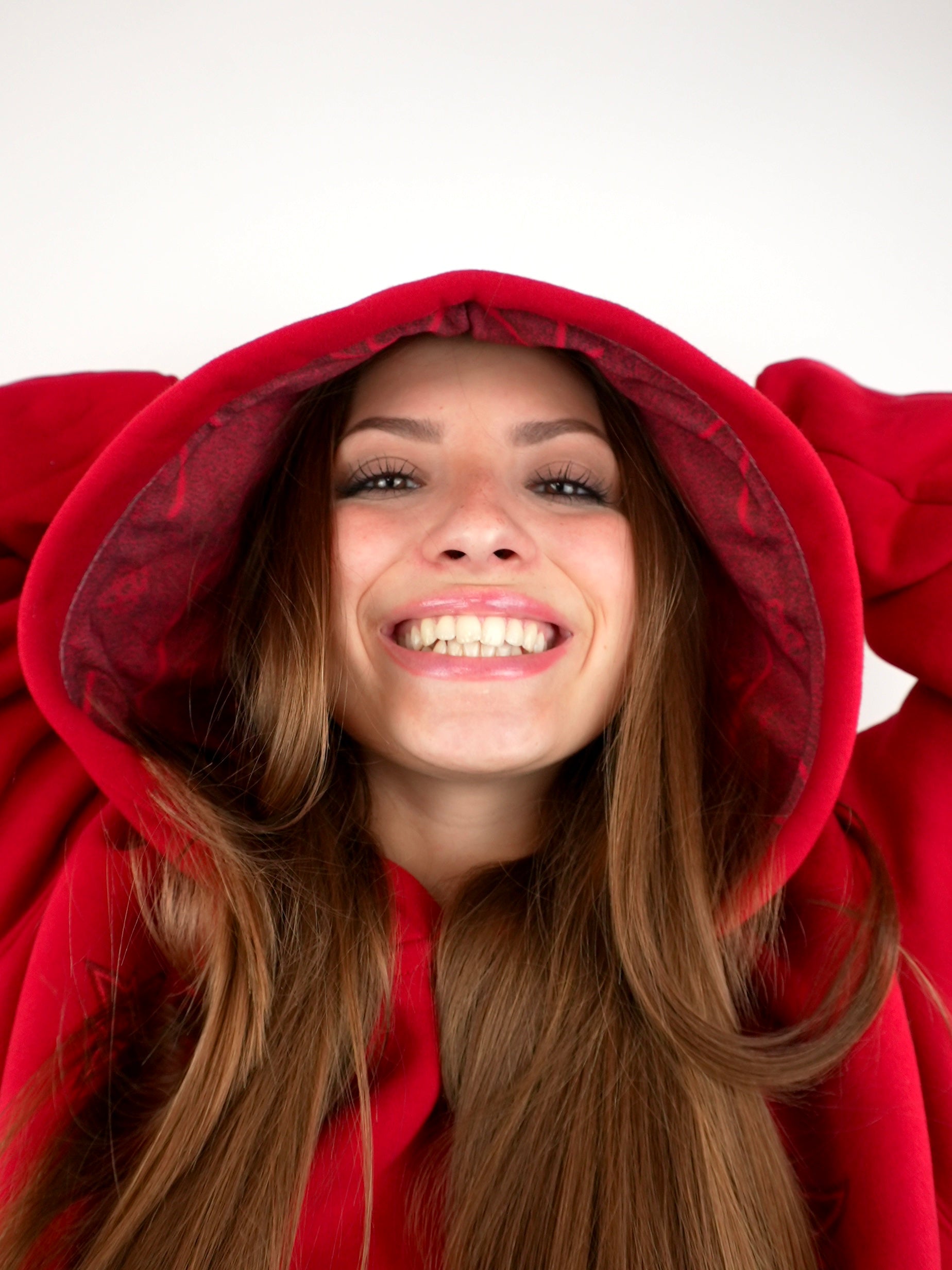 Mikina červená jako západní slunce s energií ulice a řemesla. Propojuje svět moderního streetwearu s teplem a duší marockých koberců.