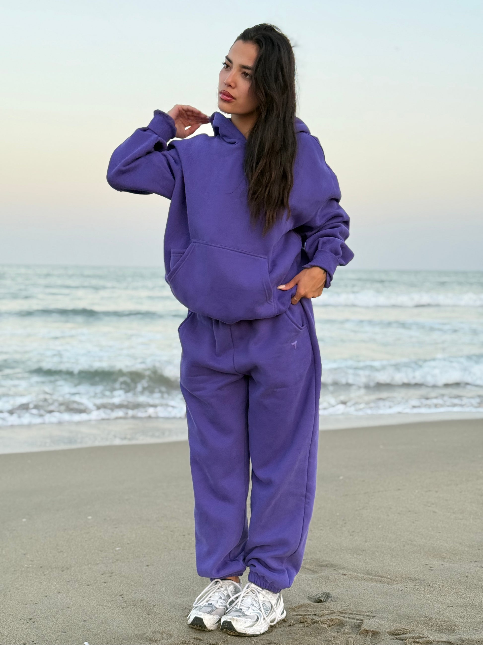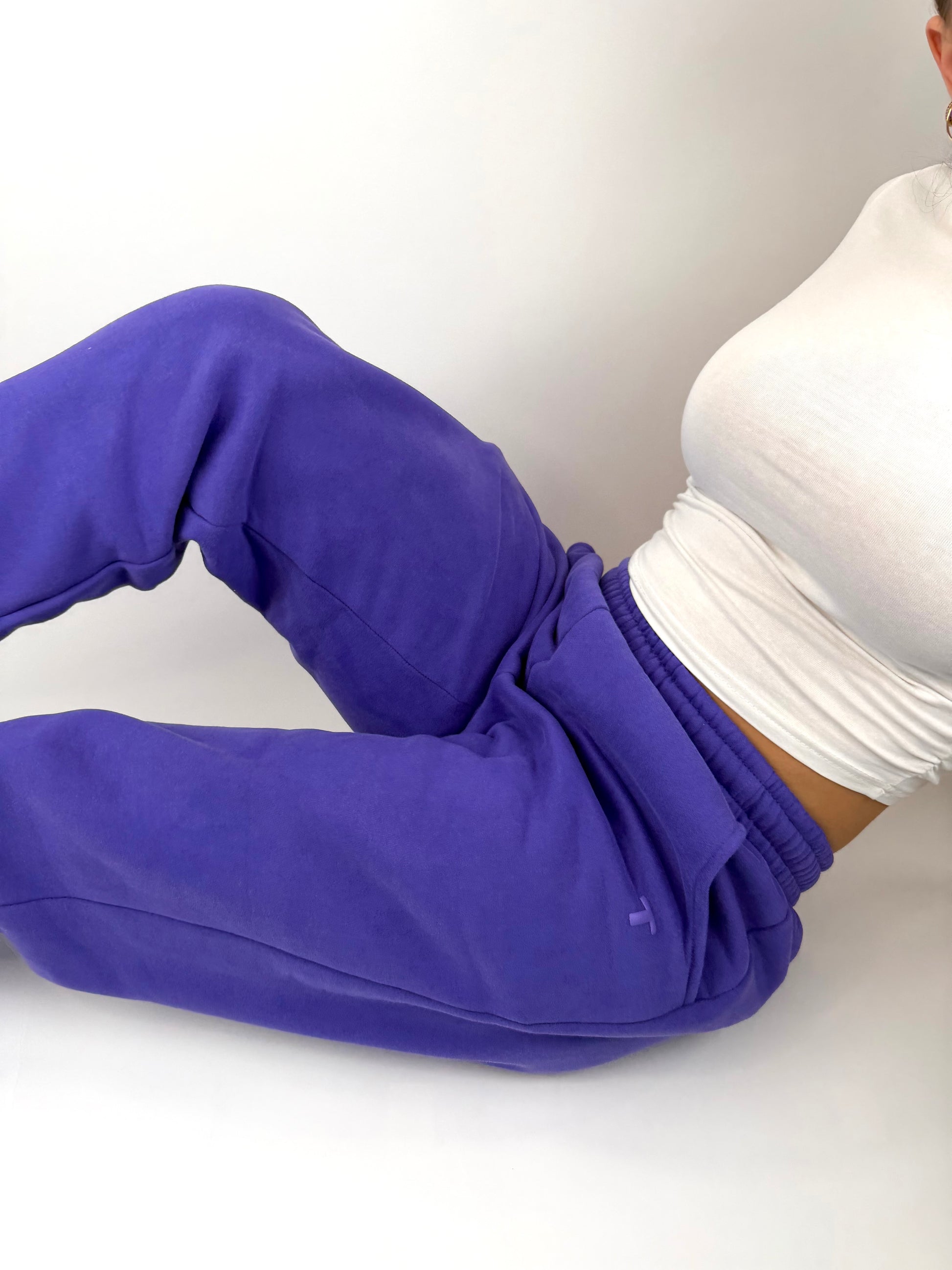 Na první pohled fialové tepláky. Když se podíváš blíž, uvidíš jemný fialový whale shark print schovaný zadních kapsách a minimalistické puff print T logo. Perfektní v soupravě s Royal Purple hoodie.