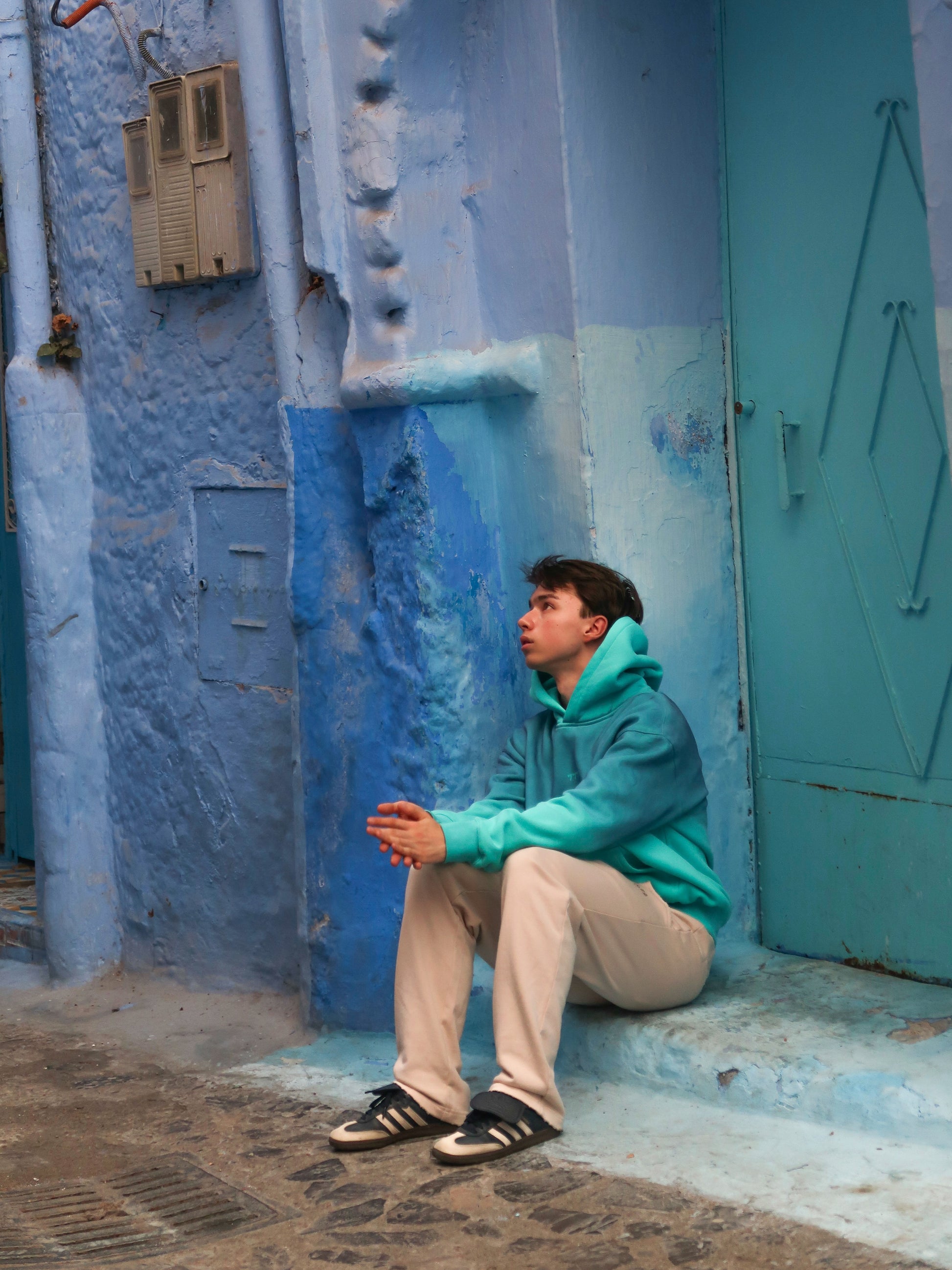 Tahle mikina působí jako nekonečná vzpomínka z jiné reality. Tyrkysovo-modrý přechod s fialovým nádechem představuje oblohu a moře při západu slunce. Minimalistický nápis '777' na hrudi je symbolem štěstí a sebedůvěry - připomínka, že je vše tak, jak má být.